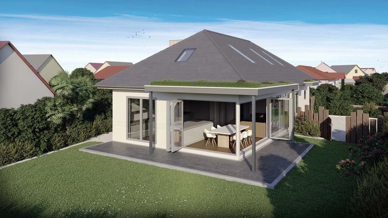 After demolishing the existing property, we worked closely with the client to deliver a home they were delighted with. We incorporated some innovative features such as Velux Cabrio roof balconies, giving sea views from the first-floor bedrooms and office.